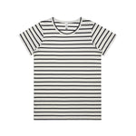 • Thin stripe, self-fabric neck binding, side seamed, shoulder to shoulder tape, preshrunk to minimise shrinkage